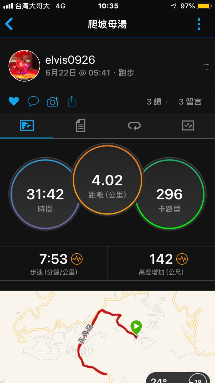 2019-06-22elvis700926在 爬坡跑得嫑嫑der 發表留言 爬坡跑得嫑嫑der 一早的日出總是最美 今天有場幸福的喜宴要參加 起了大早練練久違的爬坡跑步 也試試自己的心肺功能是否有提升 出發前心想 能跑的時間不多 只有半小時 提前大腿 向前跨出 過了15分鐘 發現半小時搓搓有餘了 雖然心律控制的還不錯 但大腿🦵小腿🦶都已經在哀嚎 累積的乳酸已經排不完了啦 不過在這早晨半小時運動中 其實獲得更多體悟 很多成功人士的光環跟成就真的不是偶然 他們的自律是真正促使成功的推手 自律✊堅持💪勇往直前 分享此文: 分享到 X(在新視窗中開啟) X 分享到 Facebook(在新視窗中開啟) Facebook 喜歡 正在載入... 相關